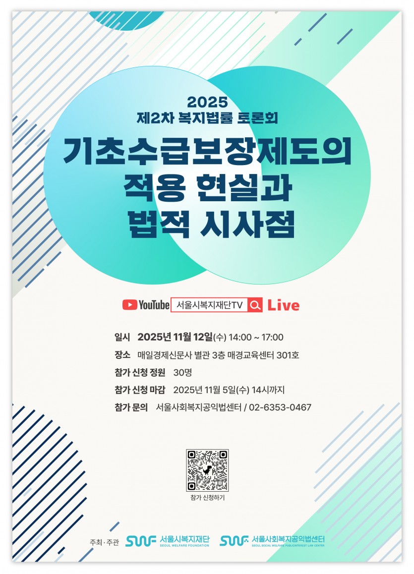 ■ 행사명: 2025 제2차 복지법률 토론회 <기초수급보장제도의 적용 현실과 법적 시사점>